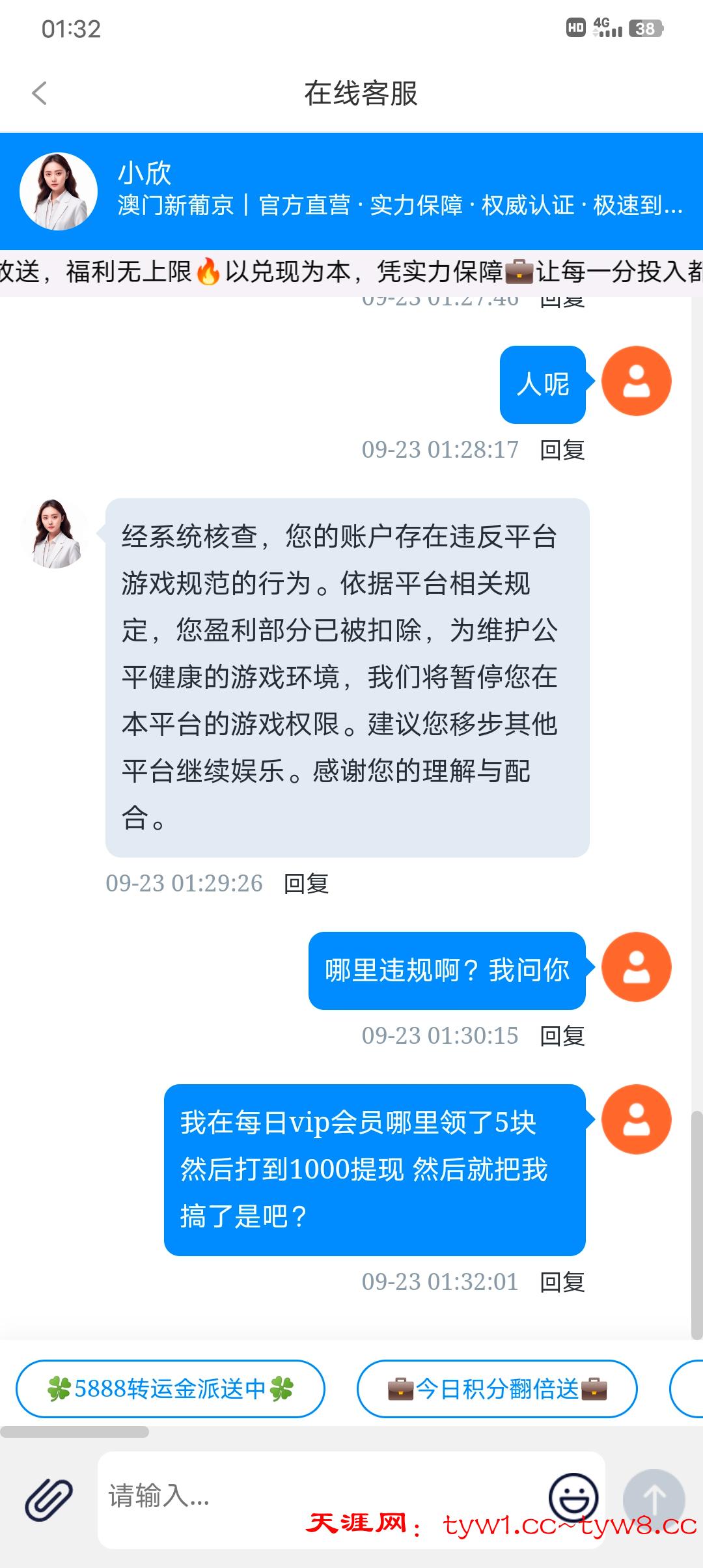 这个平台我是VIP2 每天可以领取5块红包 今天领到5块打到1000块提现直接给我黑了 说我违规了什么的 希望各位老哥避雷 😭