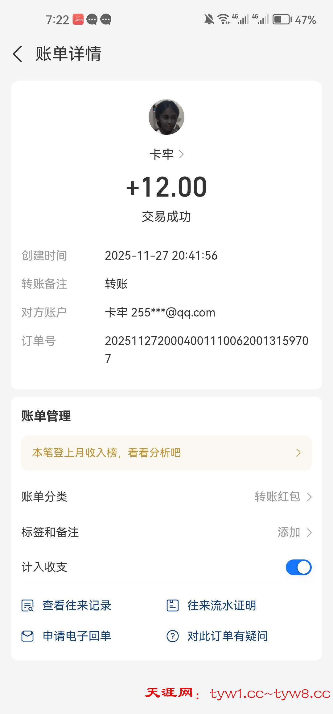 支持天涯牛仔收到