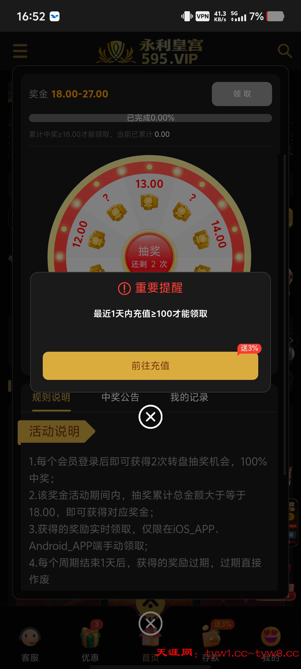 充值100才能抽