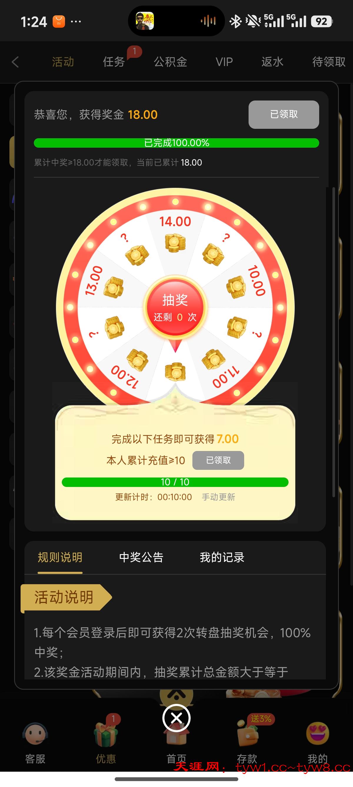 :第一步下载app,找到下载app活动送18(第一次转一下,如果第二下转盘提示充值10块就可以领取10+18,充值10块的渠道有支付宝也有钱包)