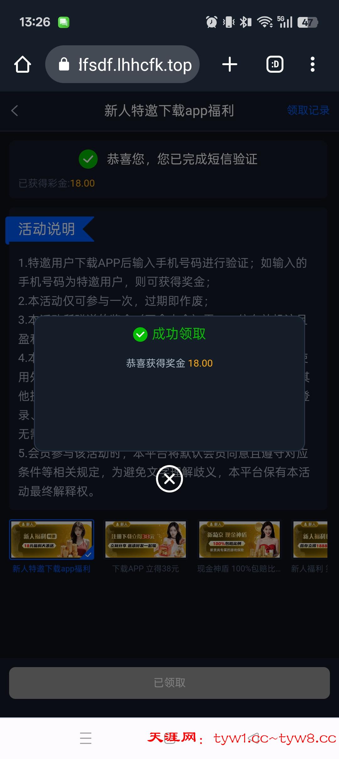 碰瓷短信彩金