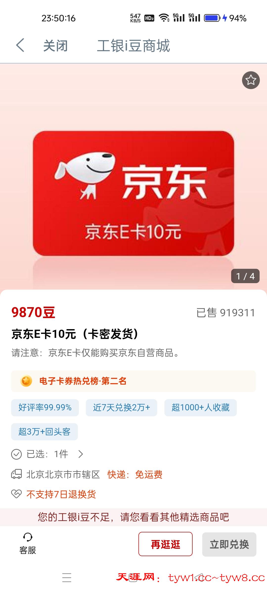 工商银行每月i豆换一张10元京东e卡