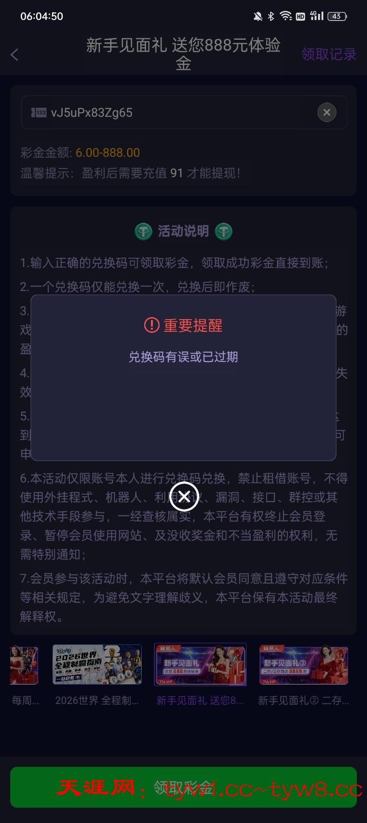 举例:(代码打到200,必须充值200! 打充值的3倍流水200*3=600流水就可以提款无上限)