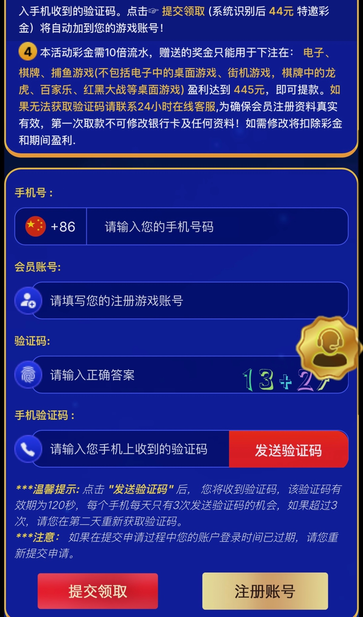 下载app成功后,注册账号并绑定银行卡,请您编辑短信【会员账号 + 绑定取款银行卡号后6位数字】发送短信到公司手机号码【186-5178-1836】,注:每个会员账号,手机号码只可以发送申请一次!请大家避雷以下错误示范,以免彩金无法到账! 发送成功后截图提供给在线客服,以便为您提交到相关部门审核处理。网址点击进入PS, 图片是特邀44 是后续官网给你发特邀短信,一般10天半个月有可能会更长时间!总之一句话先注册账号申请25先,特邀短信要等待,时间不定!